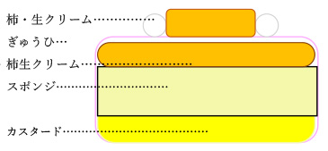 旬の次郎柿にスポンジ、カスタードクリームをぎゅうひで包みました。