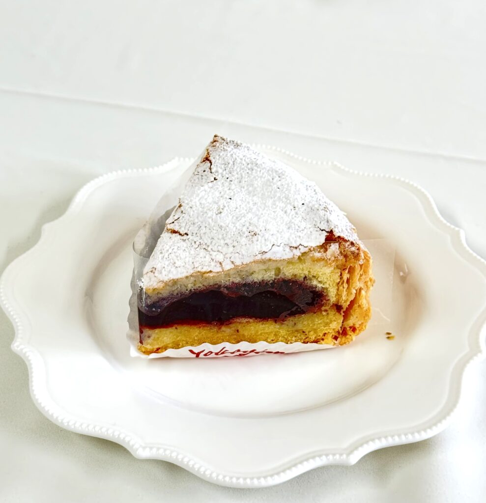 ブルーベリーとクリームの相性が良いタルトです。表面にブルーベリーの濃厚なジャムを塗りました。