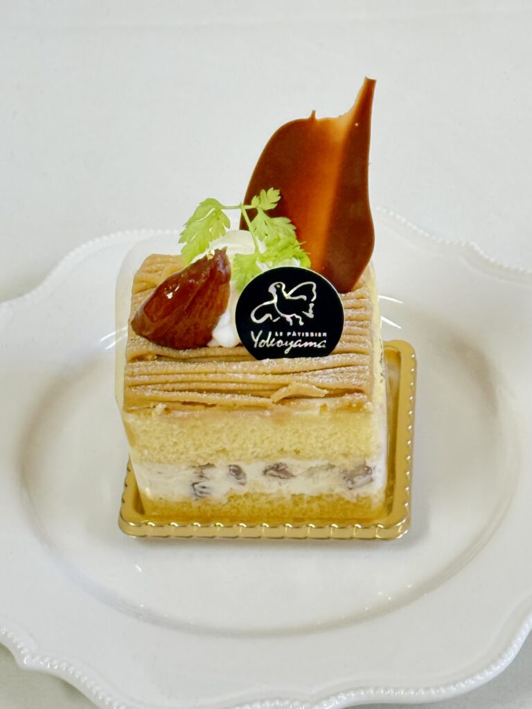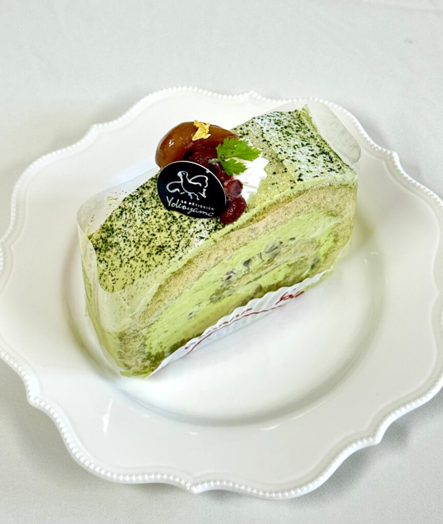 抹茶のスポンジに抹茶のクリーム、大納言小豆と栗