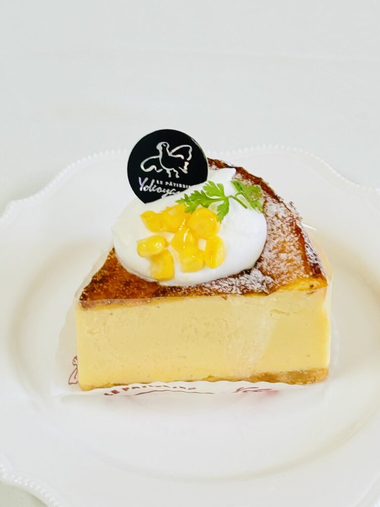 とうもろこしをバスクチーズに加えた、夏らしい一品です。