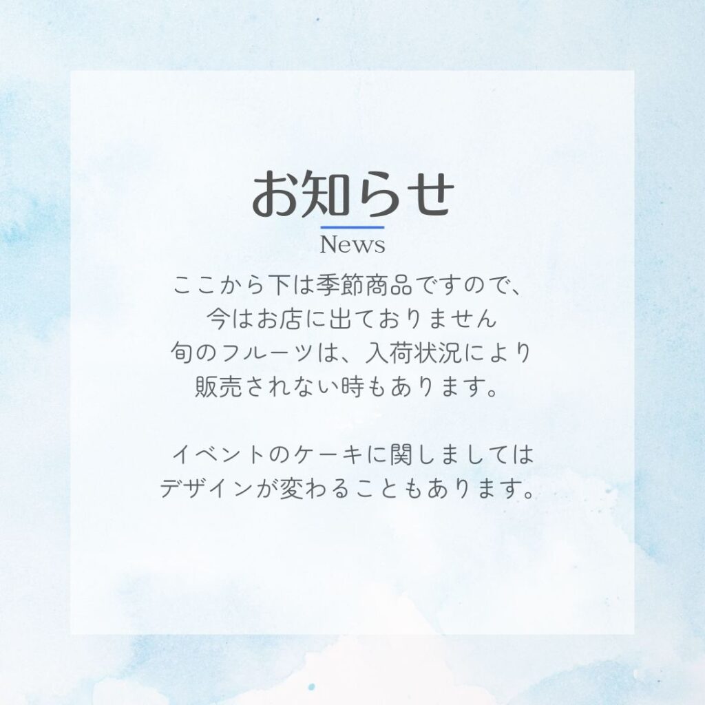 苺の美味しい季節限定商品(11月後半~5月中旬)季節のフルーツに変わります。