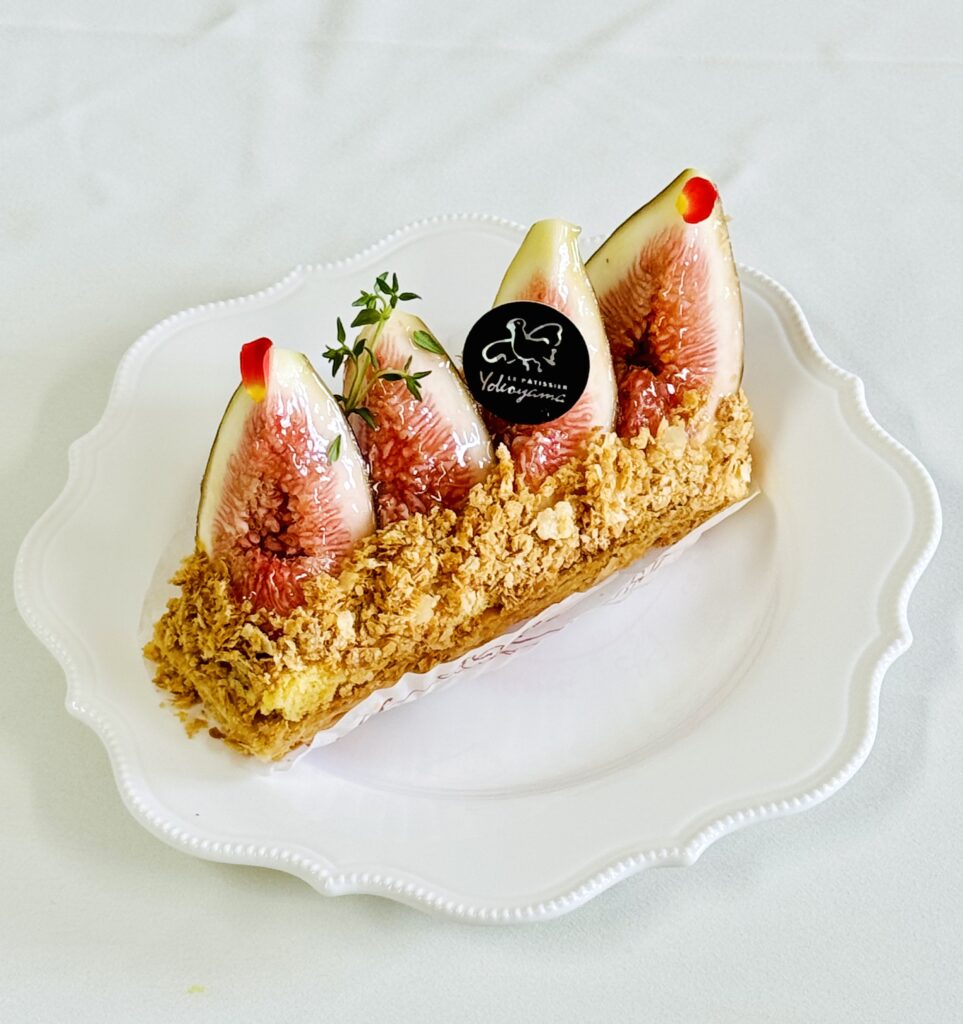 タルト生地にレアチーズとカスタードクリームの入ったいちじくを乗せました。