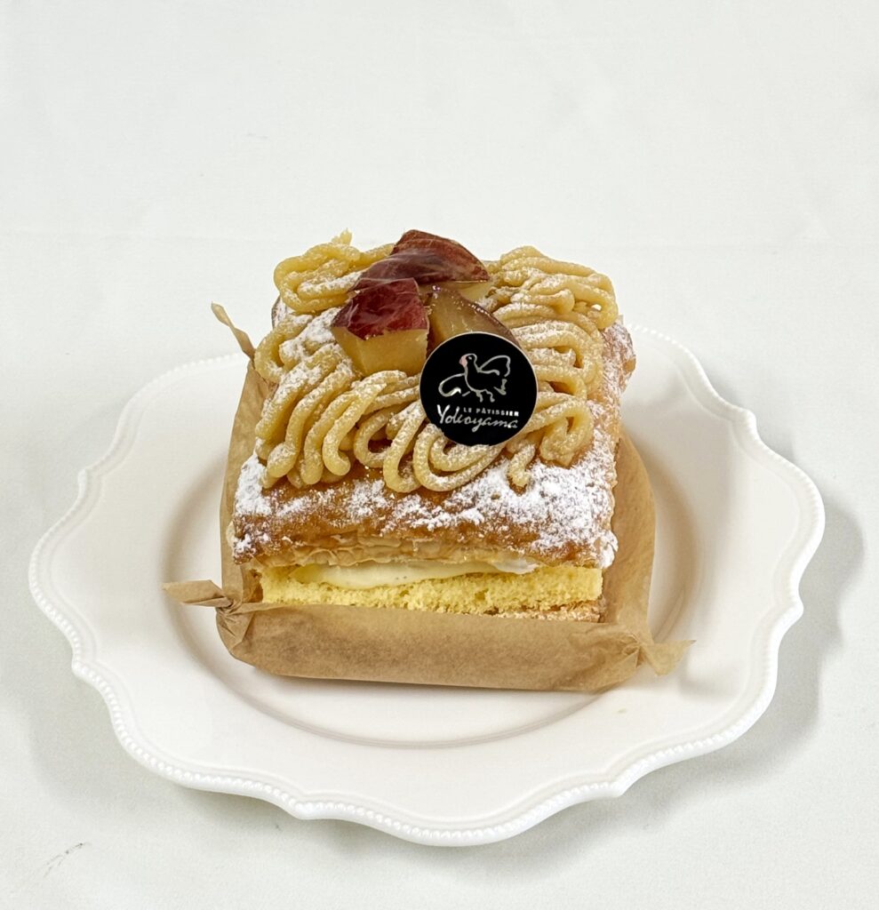 サクサクのメレンゲの上に蒸し栗を乗せ、生クリーム、栗のクリームを細かく絞ったモンブランです。