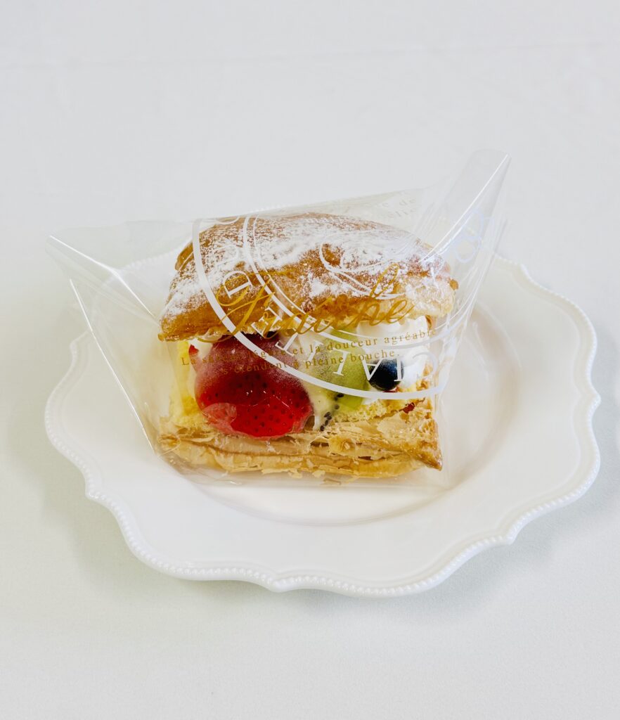 サクサクのパイ生地にたっぷりの生クリームとカスタードクリーム、フルーツをサンドしました。