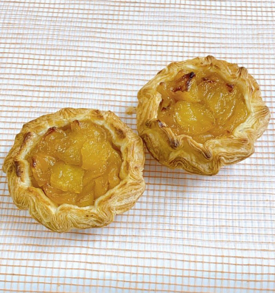 角切りりんごを煮詰めパイ生地と共に焼き上げました。